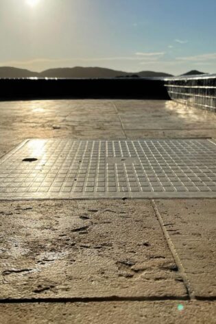 TAMPA ARTICULADA COM GRELHA PARA CASA DE MÁQUINA 80X80CM CINZA